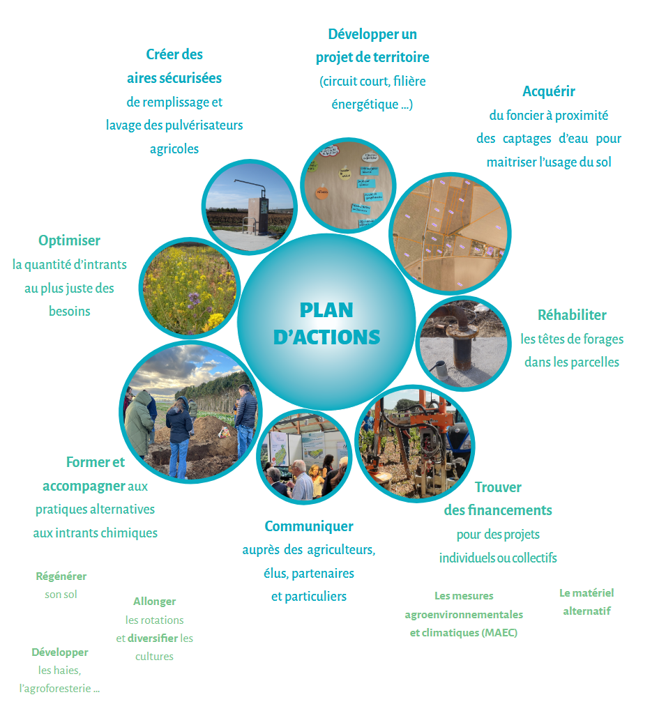 Depuis 2012, l’équipe du service Eaux souterraines de l’EPTB déploie sur les 23 captages classés prioritaires un plan d’actions s’appuyant sur les mesures suivantes :