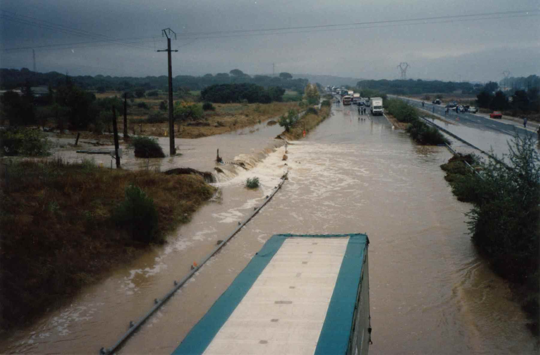 La Vallongue coupe l’autoroute A9 au niveau de Bernis le 3 octobre 1988