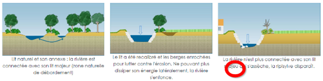 De surcroît, l’enrochement ou le fauchage mécanique des berges après canalisation n’autorise pas la ripisylve à s’installer à nouveau.